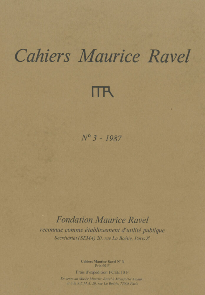 NECTOUX, Jean-Michel, «Maurice Ravel et sa bibliothèque musicale», p. 53-63. [réédition d’un article paru dans Fontes Artis Musicae, 24/4, 1977, p. 199-206]