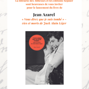 Jean Azarel dédicacera sa biographie consacrée à Jack-Alain Léger, « Vous direz que je suis tombé », en compétition pour le prix Goncourt de la biographie 2023.